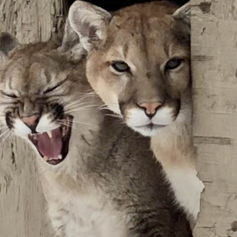 Spotted at birth these siblings have grown into tan adults. Jackson is neutered to prevent sibling breeding and were ultimately separated as adults due to size and seasonal differences. Pumas in the wild are a solitary animal except during breeding season. As adults, Hope and Jackson enjoy having their own spaces. They are some of the most active cats at Cat Tales. Born September 25, 2019