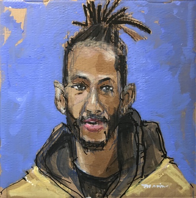 I think with Dominic, I sought of hit my stride starting to paint with light washes and then coming in with some finishing colors. I also remember he was wearing this great hoodie jacket that I wanted to get into the painting and I’m glad I did.