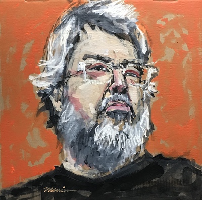 One of the reaons I started this pizza box project is because prior to this, I had done over 100 self-portraits, either drawings or paintings, and I wanted to convince myself that I could paint people other than me. An easy way to paint other people was to give the portraits away. And so part of the project was just to prove this to myself, that I could paint other people as well.
