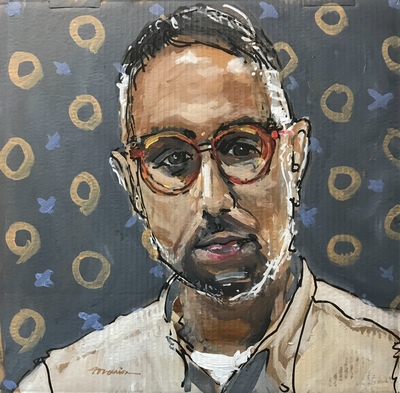 Chris’s portrait was not coming along so well. I think because he asked me lots of great questions which I answered while I neglected to see that I had gotten the proportions of his face wrong. At some point I realized this and I told Chris I basically had to restructure his face at which point his likeness definitely fell into place. As part of our session, Chris, who is a professional portrait photographer, traded portraits with me and took some portrait photos of me which I absolutely love.