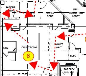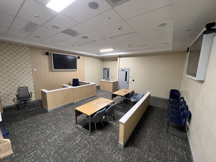 Stop 6 is the Court Room. This room has the ability to have live or virtual Court Room sessions. There room for Judge, Jury, Court reporter, defendant, lawyers, as well as others in attendance. Please take a moment to look around, then use your access card and walk thru the Patient waiting areas and then press the security call button to exit out to Stop 7.
