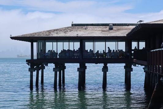 The Spinnaker Restaurant at 100 Spinnaker Drive has anchored its own pier extending into Richardson Bay since the late 1960s, offering 270-degree panoramic views of the San Francisco skyline, Angel Island, Alcatraz, and the Bay Bridge from floor-to-ceiling glass walls. An American-Continental seafood restaurant open seven days a week, it is one of the most dramatically situated dining rooms in the Bay Area, with an award-winning wine list and a fresh, seasonal seafood menu that has earned it a loyal following for over five decades. Named for the great billowing sail — the one the Portuguese sailors who built this waterfront knew best.