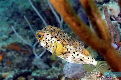 Also in this exhibit you may see a long spine porcupinefish. The unique features of this fish give it protection against predators. When threatened, it will fill its body with air or water, which makes its body swell like a balloon. This makes it too large to fit into the predator’s mouth and the extended spines make it even less desirable. The teeth of both the upper and lower jaws of this fish are fused, forming a solid, heavy beak, making cracking the shells of snails, sea urchins and hermit crabs easy.