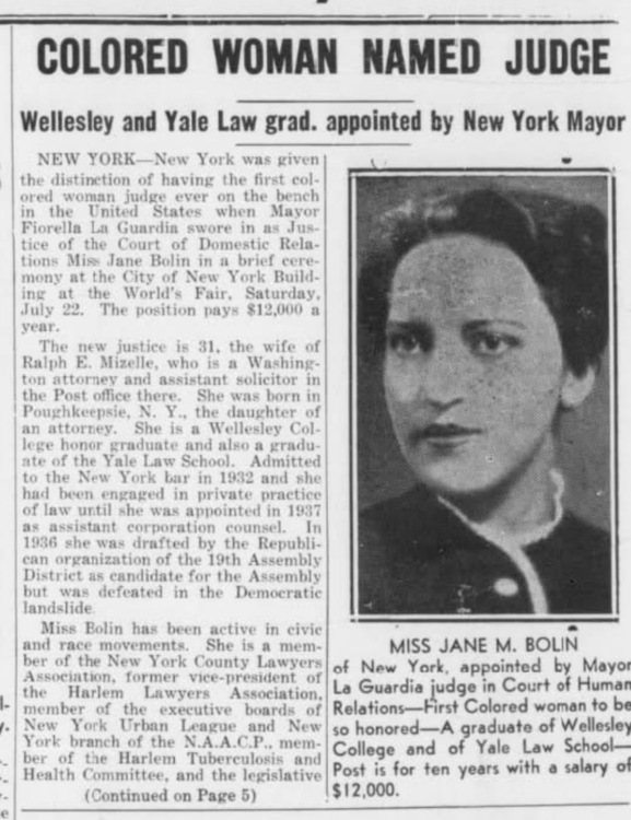 It's not like she didn't deserve the appointment. After all, prior to becoming a judge, Ms. Bolin, was the first black woman to graduate from Yale Law School and her intellect and abilities made her a standout as the very first black woman to join the New York City Law Department.