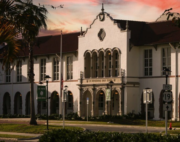 In 2021, Pinellas County Schools completed a 40-million-dollar renovation of this historic property including restoration of the auditorium and administration offices, refurbishing original features like chandeliers, skylights, and repairing the front entryway terracotta.