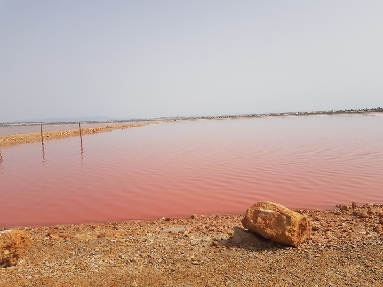The pink colour of the Torrevieja lagoon is due to the presence of pigments possessed by a series of very peculiar bacteria that inhabit very extreme environments characterized by high salinity. These bacterias are called halobacterias.