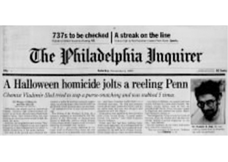 Figure 7. A research associate at Penn was stabbed to death on Larchwood Street and 43rd. © The Philadelphia Inquirer, Nov. 2nd, 1996. https://www.newspapers.com/newspage/178362696/