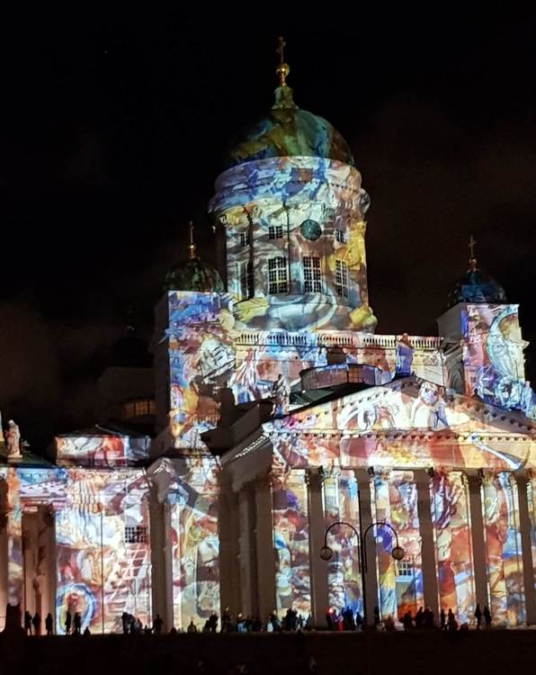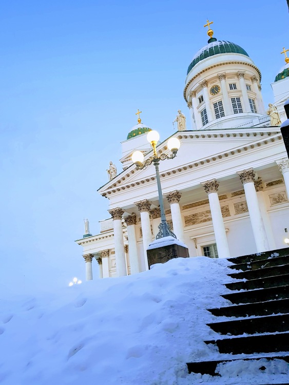 Alexander I decided to build the new capital in Helsinki and its government buildings in Senate Square. The Tsar called on the German architect Engel, who drew up the construction plans for the Senate, the first public building built in 1812, then the university in 1827 and the white Lutheran cathedral dominating the square, which was inaugurated in 1830 and completed after the death of the architect in 1852. The steps in others were added and cut in the granite rock, which covers all the city. The Church is open to the public outside the hours of religious service. In winter the front steps are covered in snow and you can sledge down to Senate Square and in summer just sit and drink a coffee enjoying a ray of sunshine. The church and Senate Square are the places of many concerts, shows and exhibitions such as the coronation of Saint Lucia on December 13 and the Christmas market. The Cathedral is also illuminated with a colourful light show at the beginning of January which is called Lux and lasts for several days.
