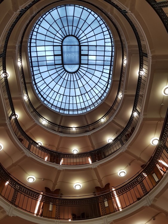 Let's go inside the oldest university library opposite to the cathedral! It was designed as the church by the architect Carl Ludvig Engel in 1844. After the fire of the University of Turku in 1827, the remaining books were transferred to Helsinki, the oldest dating from1640, date of the foundation of the Royal Academy, the first Finnish University, when Finland was a part of Sweden. Nowadays all books are stored there by law to preserve the Finnish cultural heritage. In the newest extension from 1906 called The Rotunda, there is a book cave excavated in the granite rock 18 meters under the ground, to preserve the most valuable books.