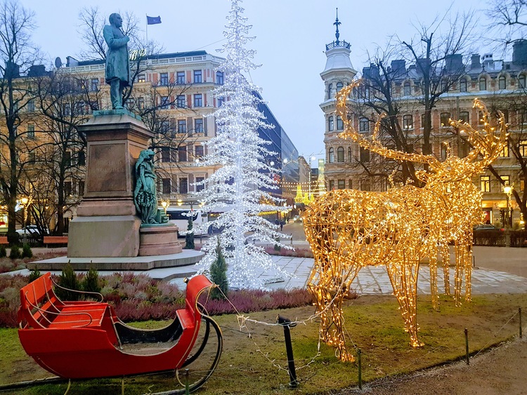 After crossing the street from the Kämp hotel, let's stop in the middle of the park to admire the statue of the Finnish national poet.
