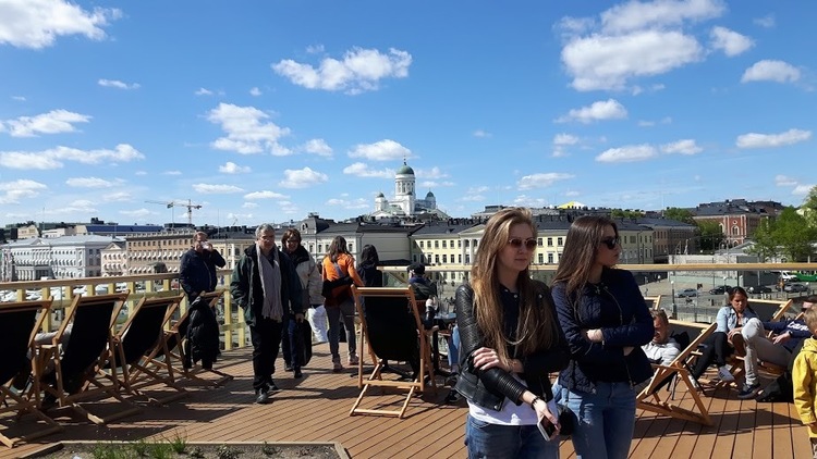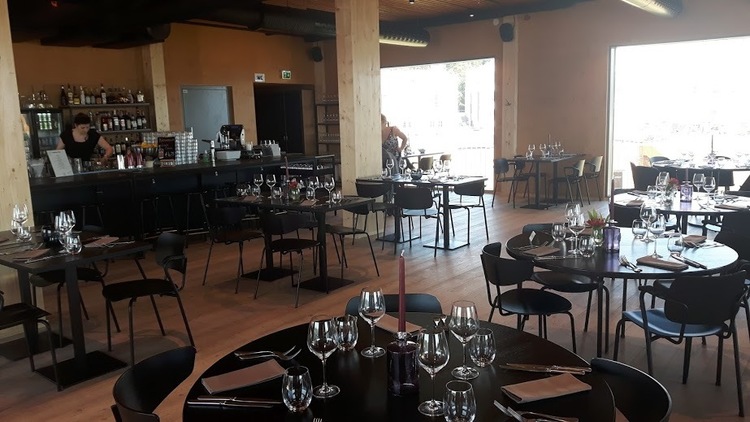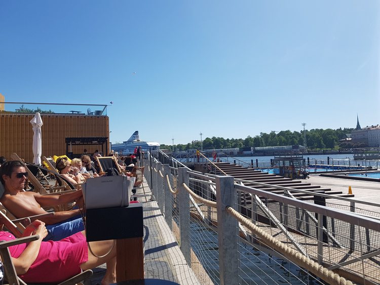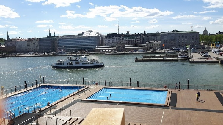 Let's have a view from the terrasse of the public outdoor swimming pool by the market place !