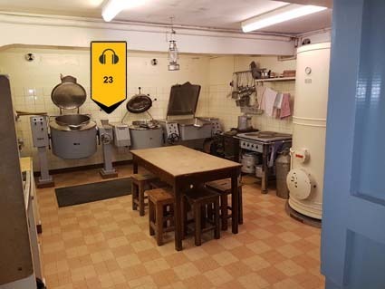Dans le local annexé, se trouvent la réserve pour le matériel de cuisine, les frigos ainsi que la pompe de distribution d’eau pour tout le fort.