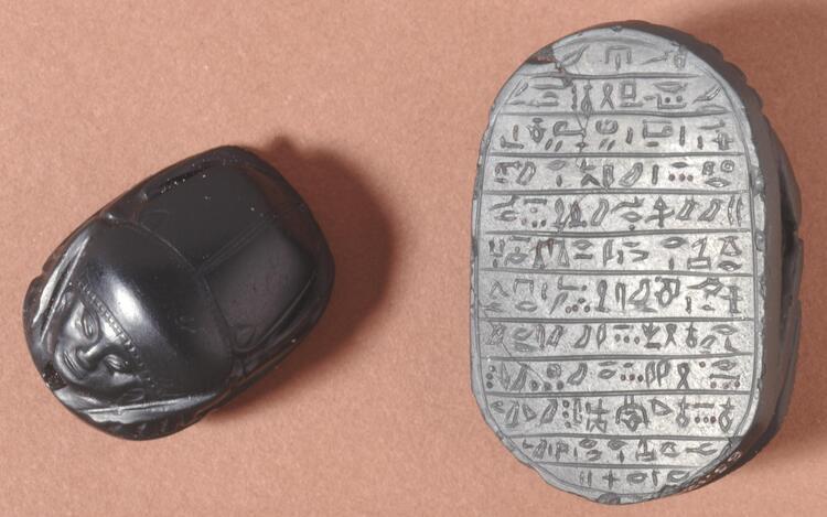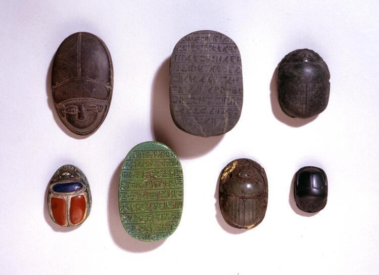 Buch der Toten und Skarabäus-Amulette (Raum 62)