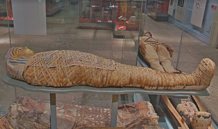 Hier sehen Sie Mumien, kunstvoll bemalte Särge und Grabbeigaben – sie stammen aus der Zeit des Mittleren Reiches bis hinein in die griechisch-römische Epoche.