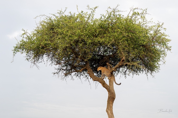 A leopard keeps watch over the savannah.