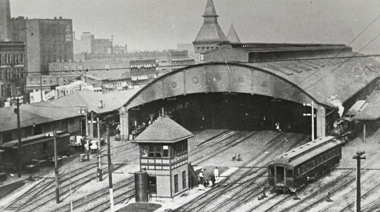 Lastly, it would be close to several assets already in place. New York Central had its vast freight and stock yards adjacent to the planned site, and the American Railway Express Agency, a national express delivery service, already had a depot on Curtiss Street. The structure, built in 1917, could be integrated into the workings of the new station. Remember: At the time, “express” items were loaded onto passenger, not freight, trains.