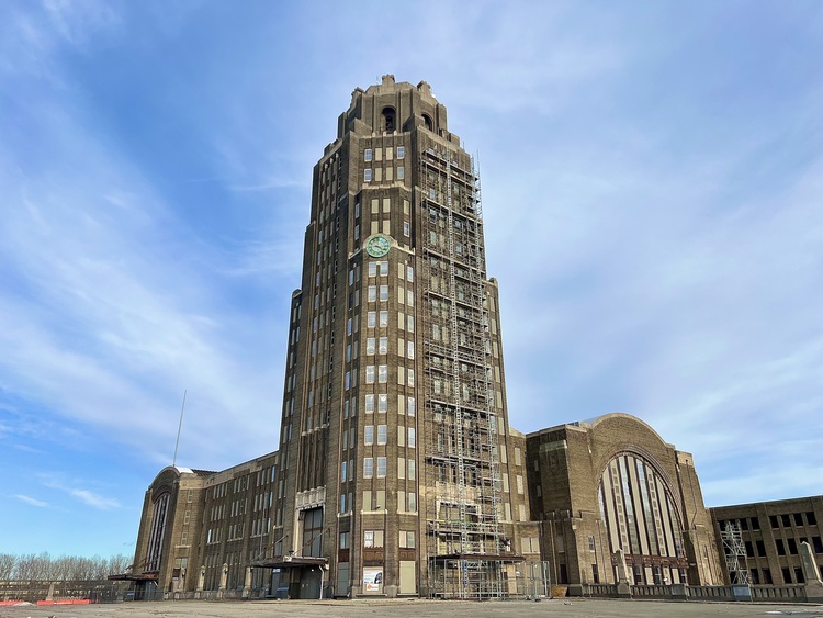 In front of you is the jewel of this 61-acre site: the Main Terminal Building. The art deco 17-story Tower reaching high into the sky housed train control rooms and office spaces for 1,500 of New York Central's nearly 8,000 Buffalo employees, as well as employees of the Pennsylvania Railroad.