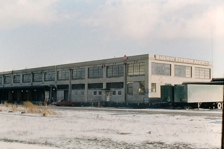 Beyond the Post Office, not quite visible from where you’re standing, is the Railway Express Agency Terminal Building. This was the local home of the American Railway Express Agency -- a national express delivery service. This structure, which we usually call the Railway Express Building, was actually built in 1917. In fact, one of the reasons the Central Terminal was built here was to take advantage of the Curtiss Street structure and its operations. Some have called this building the FedEx or UPS of its day (ironic, since UPS was a growing competitor at the time!). At the time, “express” items were loaded onto passenger, not freight, trains.