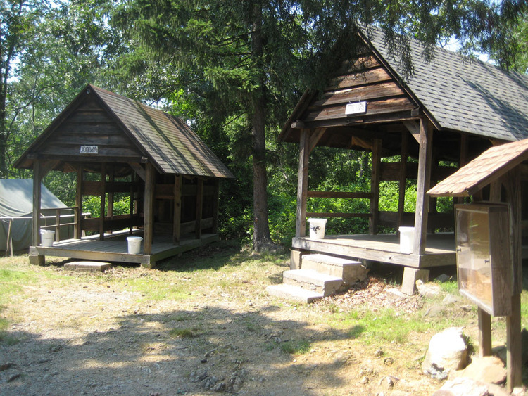 The Boonesboro campsite is one of five stockade sites at Camp Horseshoe that were built for the opening of camp in 1928. The stockade sites include four to five open-air stockade cabins that sleep eight individuals. Each stockade site also has an enclosed leader cabin.