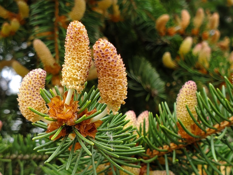 Here we have the Norway Spruce, or Picea abies, a fast-growing tree often reaching heights of 40-60 feet. Despite its name, this tree hails from the Black Forest in Germany, not Norway, though it did spread across Europe, eventually reaching Norway. The Norway Spruce thrives in sunny, open spaces rather than forest enclosures and is extremely cold-hardy, able to survive most cold temperatures. This tree produces greenish-red seed cones that mature to a light brown color and are the largest of any spruce, reaching lengths of 9 to 17 centimeters. The leaves are dark green needles, just over 1 centimeter long.