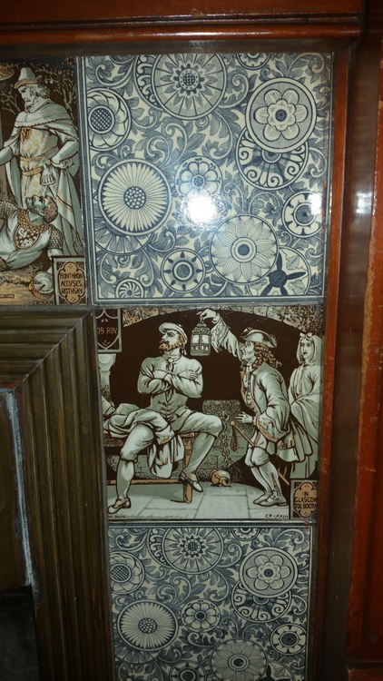 • Cada azulejo alrededor de la casa tiene un motivo literario particular. Este set en particular representa las obras de Sir Walter Scott (The Waverly Series).
