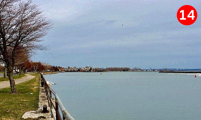If you look past the Observation Deck, in the distance you will see a park that follows the coast. That is the location of Ralph C Wilson Centennial Park.