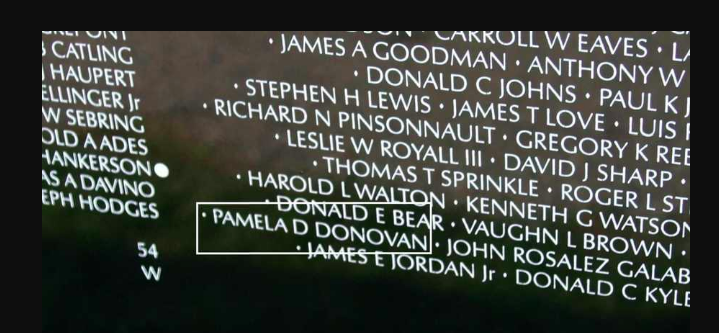 In all, eight nurses, of the more then 11,000 who served in Vietnam, all volunteers, lost their lives. One, 2nd Lieutenant Pamela Donovan was from Brighton, Massachusetts. Pam was born in Ireland, and when she was 8 years old, she and her family immigrated to the United States and settled in the Boston area. After graduating from Saint Elizabeth’s Hospital School of Nursing, Pam wanted to repay her new country that had provided her the opportunity to get a good education and a better life. She went to her local army recruiter and attempted to join. Sadly, he had to tell her that because she was not a citizen, she could not volunteer. Not to be so easily turned away, she visited her member of the United States House of Representatives, a man named Tip O’Neil. He made it clear that he would fast track her naturalization process, and within six months, Pam went back to the same army recruiter, and this time she was able to proudly serve her country. She was shipped to Vietnam in early June in 1968, and died on July 8th that same year. You can find her name on the Wall, panel 53 W, line forty-three.