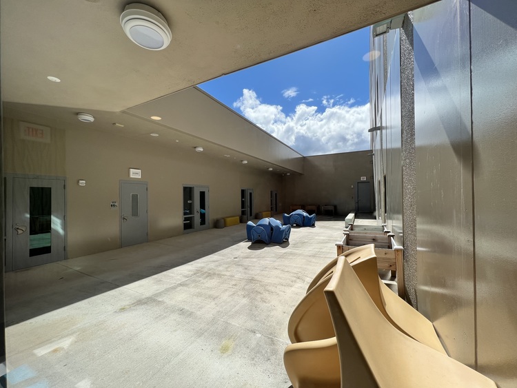 Stop 18 is the Patient Secure Courtyard. In this area you will see additional classrooms and restroom with an outdoor area for patients to relax while waiting. Once you finish exploring this area please proceed to Stop 19 which is back thru the same door you entered and to your left.