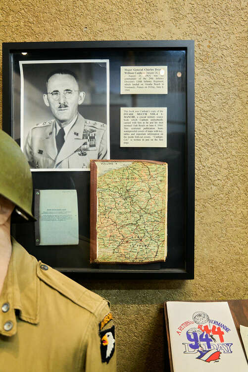 In this exhibit, you'll find a special book that once belonged to General Charles Draper William Canham, who led our landings at Utah Beach. This book, a comprehensive study of tides and topography, became a crucial tool in planning the successful D-Day invasion.