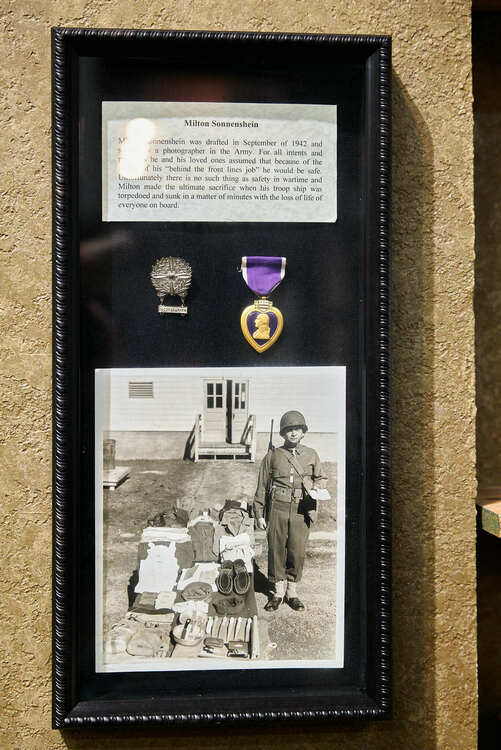 A dedicated exhibit of Milton Sonnenschein, a revered photojournalist deployed overseas during the height of the war. Sonnenschein's life tragically ended when his ship was struck by a Japanese submarine. However, his legacy lives on, and this display is a tribute to his courage and the indelible mark he left on the world through his evocative photographs.