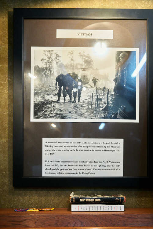This exhibit also houses an original Associated Press photo, symbolizing the profound frustrations of the Vietnam War. This poignant image represents the infamous "Hamburger Hill", a location where many lives were sacrificed for a territorial gain that was ultimately abandoned after three months. It serves as a stark reminder of the war's costly and often fruitless battles.