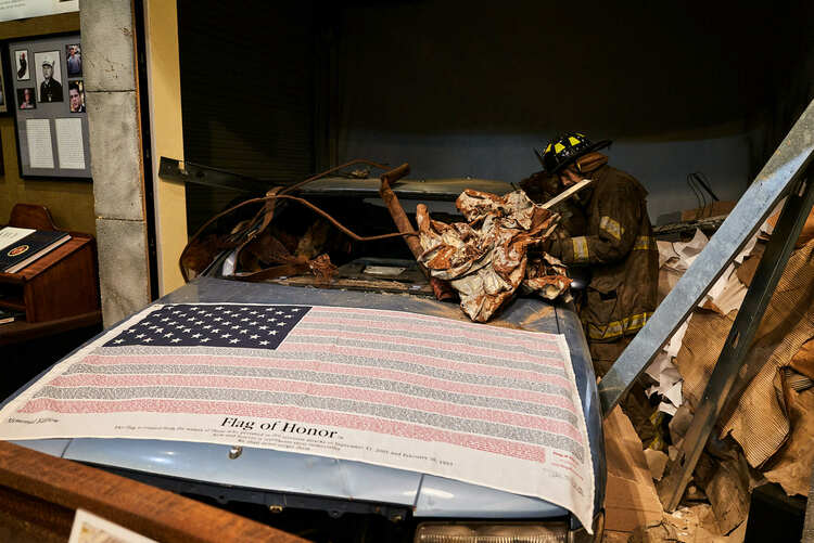 The Port Authority patrol car displayed here is a stark reminder of a more recent global tragedy – the September 11 attacks. Rescued from the rubble of the World Trade Center, the car stands as a tangible testimony to the devastation of that fateful day. Despite initial challenges in procuring this artifact, the effort was justified by the importance of preserving and presenting this piece of history to a wider audience.