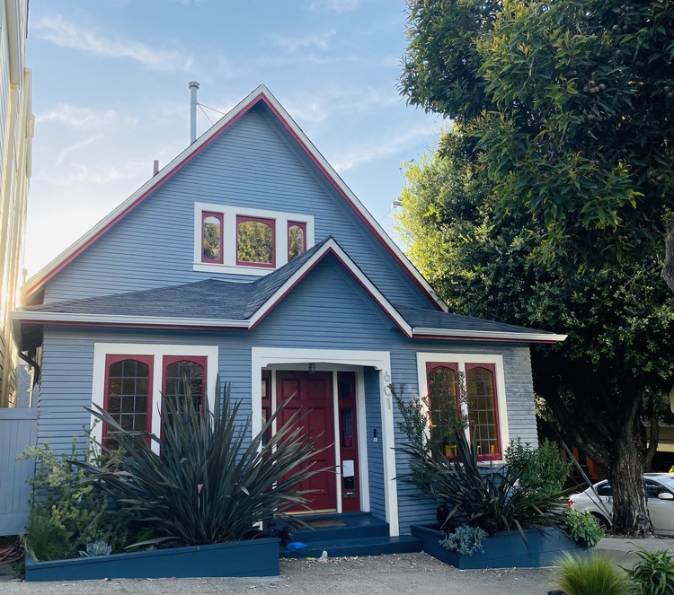 Continue up Belvedere to 17th Street, and turn right to head downhill on 17th. Before you do, look across 17th Street. The handsome residence across 17th Street at the corner (the address is 601 Belvedere) was formerly Saint Aidan’s Episcopal Church. The space was deconsecrated in the early 1960s, and was temporarily used by the Grateful Dead as a practice space until finally converted to a residence in the mid-1960s. It's now a beautiful 3-bedroom home with a loft-like giant room in the center where the church formerly held services.