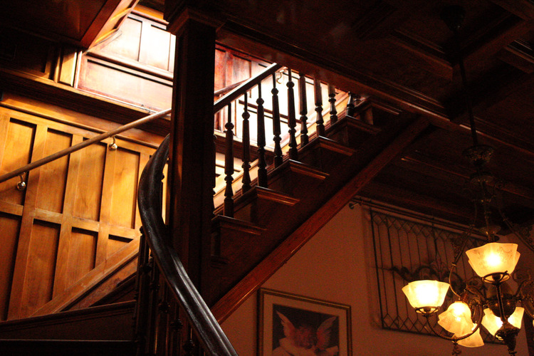 Once part of the servants’ quarters, featuring a small confessional alcove, this area was fully renovated by Fred Royce with a sauna and rooftop stairway.