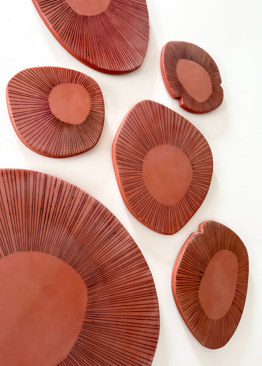 Normalmente, ambos se inclinan por las formas curvas y orgánicas e incorporan una búsqueda del equilibrio visual. Sus estilos están unificados por una inspiración poderosa y compartida: el paisaje y la naturaleza de Colorado, que ambos exploran a través del senderismo y el camping. Ambos encuentran satisfacción en la artesanía, la atención al detalle y una fase de trabajo altamente concentrada y meditativa: Robert en su torno y Jamie en su repetitiva tarea de marcar.
