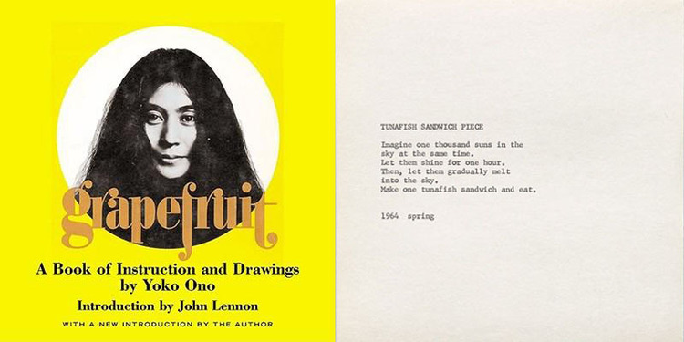 El consejo de que el arte se puede encontrar en ámbitos cotidianos e inesperados se le ha quedado grabado, lo que valida sus propias y diversas actividades creativas y refleja el trabajo de Yoko Ono con «Instruction Paintings», que invita al espectador a completar la obra de arte mental o físicamente.