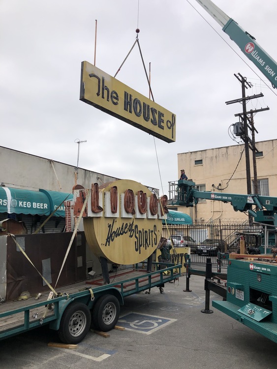 The Telis Family took over the House of Spirits and purchased the building in the 1970s. The liquor store and its deli catered to the Echo Park community until an unfortunate fire in 2018 prompted the business to close. In 2020, the family donated the sign to the Museum of Neon Art. We are preserving the sign in our collection and hope to one day return it to the community as soon as it is restored and an appropriate location is found.