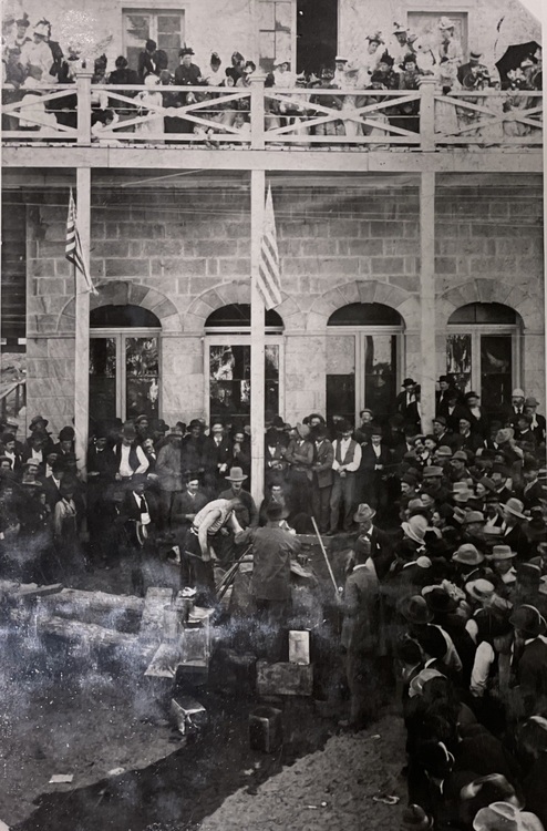 Champion Hall was on the second floor and hosted many social events, union meetings, and traveling music and acting troupes in the early days of Silver City. You can still see the stairs on the side of the drug store that once led to Champion Hall.