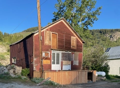 Next to the Grete house lies the Odd Fellows Hall, currently being restored by the town’s homeowners. The building was originally built as an apartment house in the 1870s by Dave Adams, a man who was responsible for building many homes for miners and others at that time. He operated the “Big Store” which once stood next to the hall. He lived in the hall and rented out the rest of the apartments. In 1905 or 1906, the building was purchased by the Odd Fellows and Knights of Pythias. Both fraternal organizations had been holding their meetings in the Masonic Hall. In those days, nearly all men were a member of at least one fraternal group as they served their social and insurance needs, caring for widows and children of many miners and businessmen.