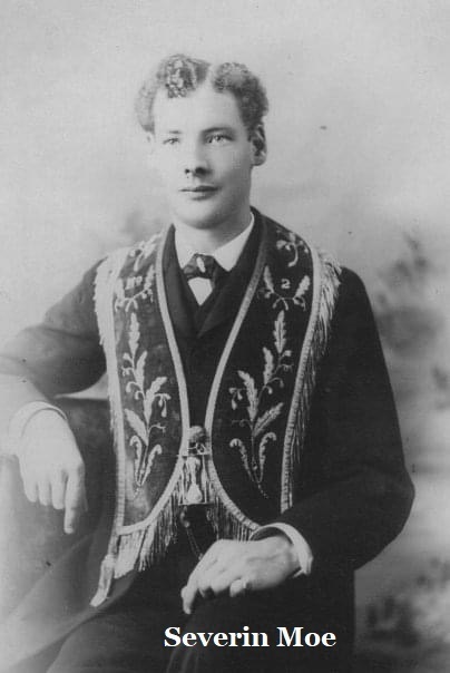Just up Washington Street and across the street is Moe's Jewelry Building. This tidy little building with the unique double doors was best known as S.N. Moe’s Jewelry Store. Severin Moe hailed from Sweden where he learned the watch repair trade and arrived in Silver City and opened his store in 1880 at the age of 21. He sold fine watches, jewelry, silverware, and eyeglasses to Silver City residents for many years. His living quarters were also in part of the building. Moe married Ida Elizabeth Grete on November 5, 1890 in Silver City. They had one child, Floy Wilhelmina, who lived only 13 days.