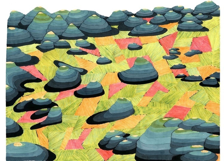 This work is a contour line painting, using different shapes and lines to highlight the beauty of landscape.