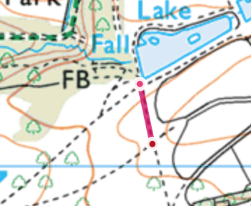 You now need to keep your map orientated, so rotate your phone to represent the different paths that you can see on the ground. The red line marked on the map is the path that we are going to take and is the only path heading uphill from here.