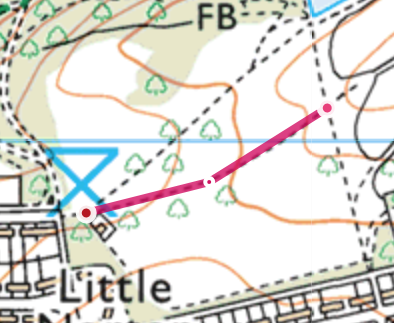Now let's look at the next section, we're going to go on the path on the right, so you will need to orientate your map. This path drifts down hill and the next stop is 350 metres away. See if you can work out how long it will take you to get there.