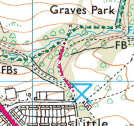 You can start to see that height gain and loss is represented with contour lines, which are the orange/brown lines on the map. These lines reperesnt areas that are the same height. s you cans ee the path on the left crosses many contour lines, meaning that in this instance the path is descending. The path on the right goes alongside a contour line, effectively meaning that it is staying level, as you can see as the path goe towards the river, it crosses several contour lines, meaning that the track will descend down towards the stream.