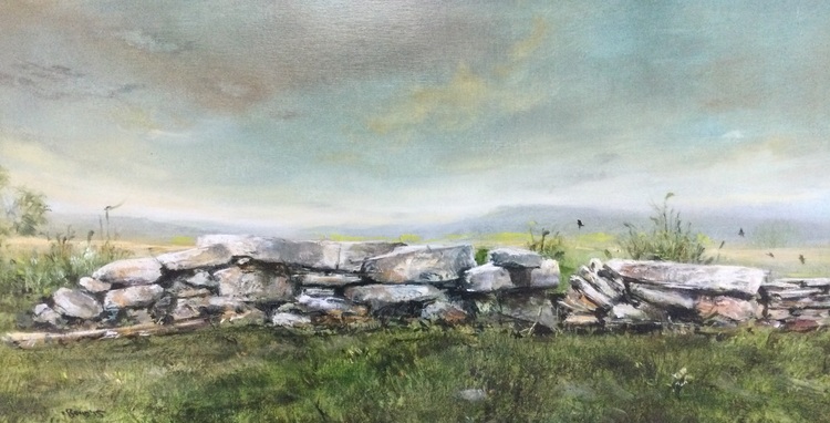 Near my childhood school is a long stack of rocks, placed there in no particular order by Mr. Glenn. I painted five versions of this scene over a period of years. I was interested in capturing how trees cast shadows on rocks and turf. Albany Township seems to be all about stone and wood.