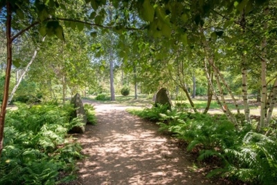 Let's start exploring the gardens! Starting at the main entrance, we will take the walking path to your right, towards the Wildflower Woods and Memorial Garden.