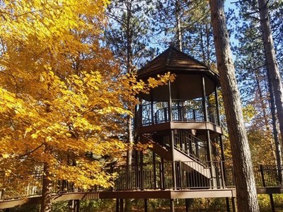 As you make your way around the pond, you will come across a magnificent treehouse amongst the trees.