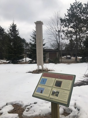 In amongst the prairie, there is a large white tower. This structure was built by the Wausau Bird Club for Chimney Swift birds. The tower provides nesting space and migration habitat for Chimney Swift. These birds cannot perch on branches like an ordinary bird, but can cling onto vertical surfaces, so a chimney structure is perfect habitat for them to build a nest. Chimney Swifts are great for insect control, so we want to welcome them into the area.