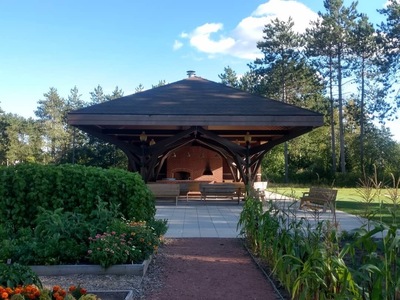 A potager is a French term for an ornamental vegetable or kitchen garden. The outdoor kitchen structure was completed in the spring of 2016. The Potager includes a stovetop, fireplace, brick pizza oven, picnic tables, and retractable walls to accommodate any event. Because the Potager is intended to facilitate garden-to-kitchen experiences, the raised garden beds are planted to provide produce for events throughout the summer and fall. Events include a cooking series called Dirt-to-Pot, Dinner in the Gardens, and various other educational programs created to connect people with plants. The raised beds are planted and maintained by volunteer groups. Each year, the volunteers come up with new themes to keep the gardens bursting with flavor. Plant material collected from the maintenance of the grounds are composted. There is a designated area to the north of the Kitchen Garden to facilitate composting efforts. The compost made from the waste, is incorporated into the Kitchen Gardens to be used again as nutrients. The extra produce from the Kitchen Garden is donated. Find some tasty vegetables in our harvest baskets on the kiosk just north of the Kitch Garden.