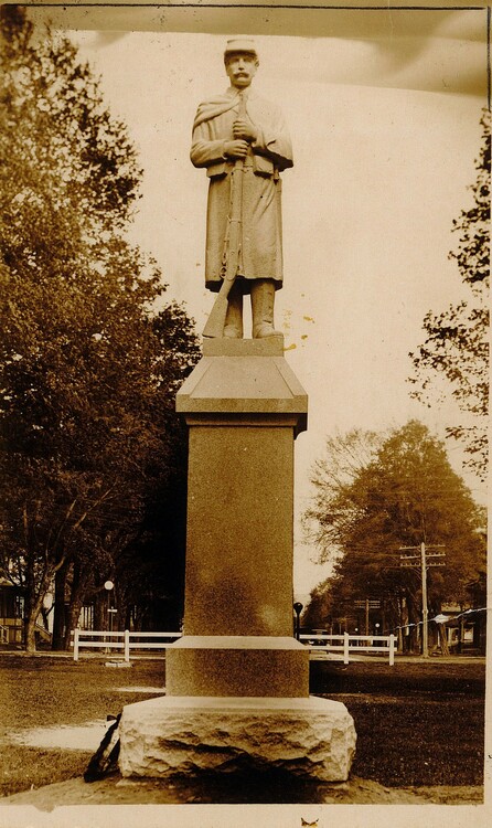 This year marks the 100th anniversary of the dedication of the Soldier’s Monument. While originally placed in the center of the Park Circle, with the soldier atop facing West Main Street, it served as the centerpiece to many a Memorial Day event in Angelica. According to the June 1924 edition of the Angelica Advocate, “the monument was unveiled by Mrs. George Graham, the oldest member of the Relief Corps and little Miss Marie Hoffman, the youngest member. Senator John Knight made the dedicatory address and D.D. Dickson gave a short talk.” The Angelica Advocate chronicled the fundraising efforts for the $2575 needed and that “two years later the last payment was made, earned by the serving of a 4th of July dinner.” The monument was moved to the Until the Day Dawn’s Cemetery in October 1949, where it remains a focal point of modern-day Memorial Day events. An October 1949 edition of the Angelica Advocate stated it was “placed on the east side of the cemetery partly up the hill and looks very well with a background of evergreens.” It went on to comment that “the monument will be missed from its accustomed place, but in many ways its present location seems more appropriate.” The monument description reads, “On the face of the monument we find the dates 1861-65, on the back 1917-18, with appropriate emblems above the dates. The American Legion will no doubt wish to add dates… .” The accompanying photo was taken during a Memorial Day event in the mid-1930’s.